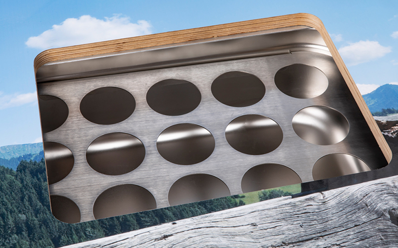 Gastrowanne aus Edelstahl (15cm oder 20cm tief)Einlage Sektkühler für Gastrowanne (für eine stehende und eine liegende Flasche) – in beide Wannen einsetzbar